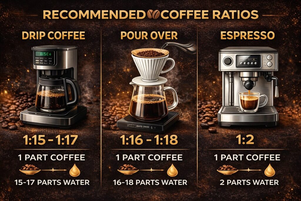 For most brewing methods, a solid baseline sits between 1:15 and 1:17